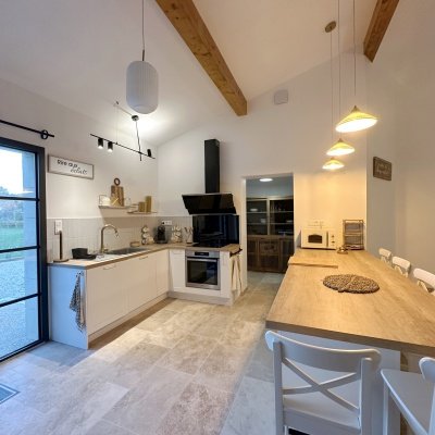 Entièrement équipée, la cuisine met à disposition tout le nécessaire pour préparer vos repas comme à la maison — ou mieux encore ! Que vous cuisiniez en famille, entre amis ou en groupe, rien ne manque pour profiter pleinement de chaque moment autour de la table.